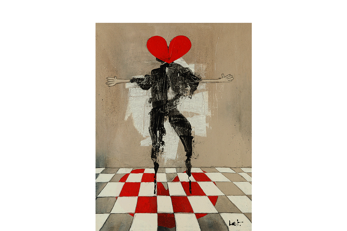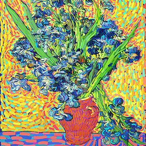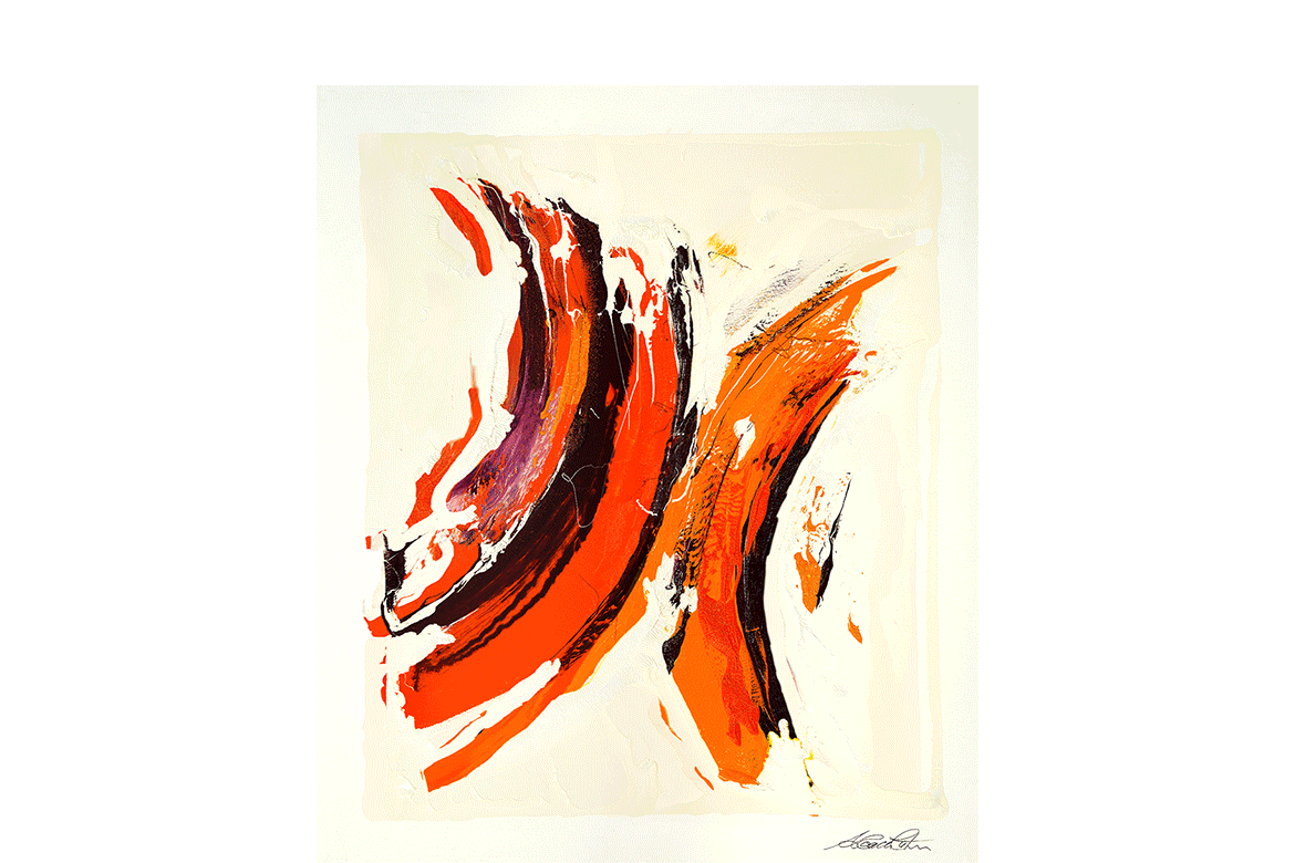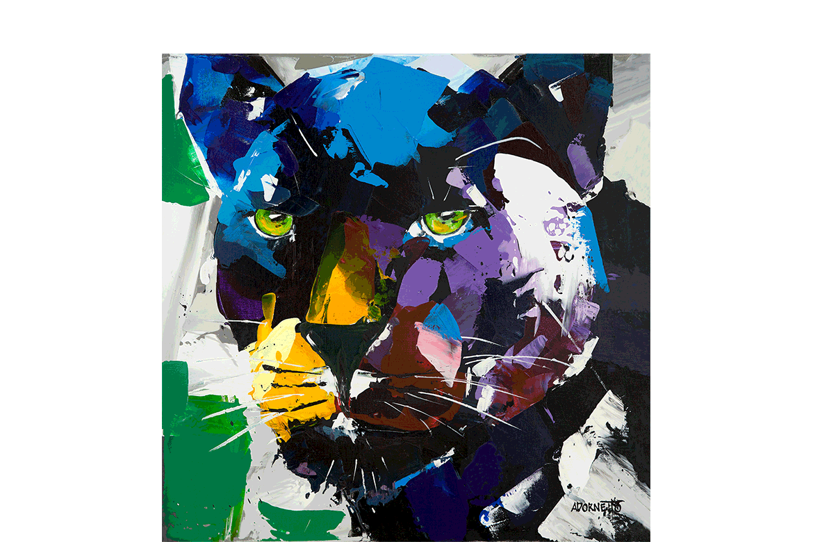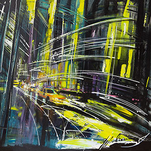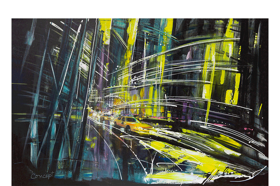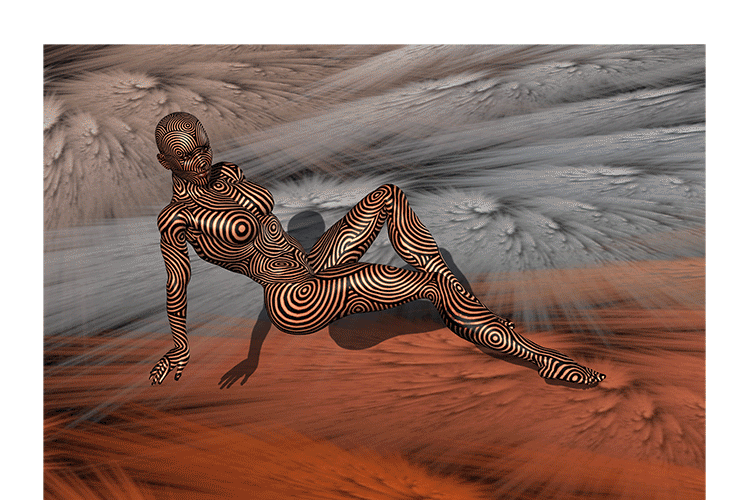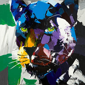 This effect gives the painting a dynamic feel and allure with its interactive character. Anywhere from 12 to 64 images can compose an animated lenticular piece. This sequence is at once interlaced and captured by the observer through a vertical lens.