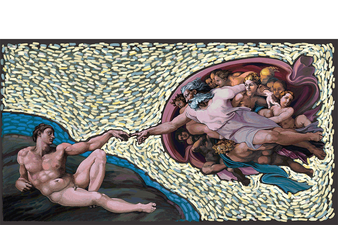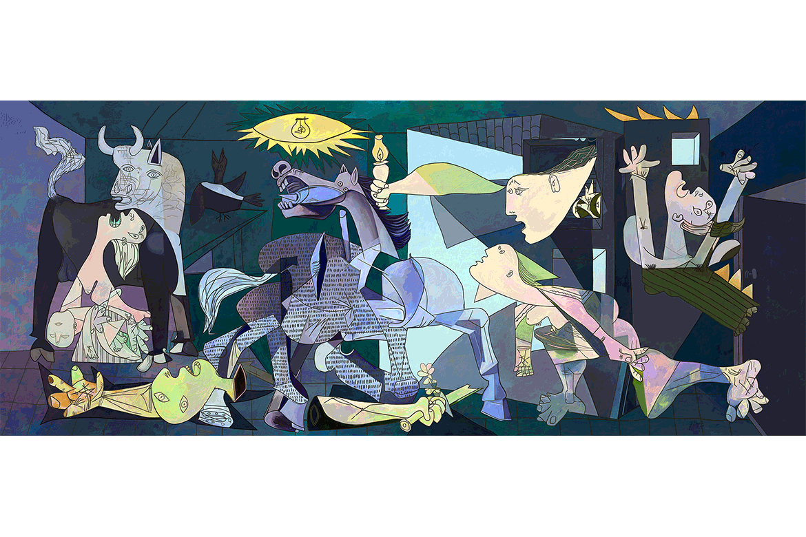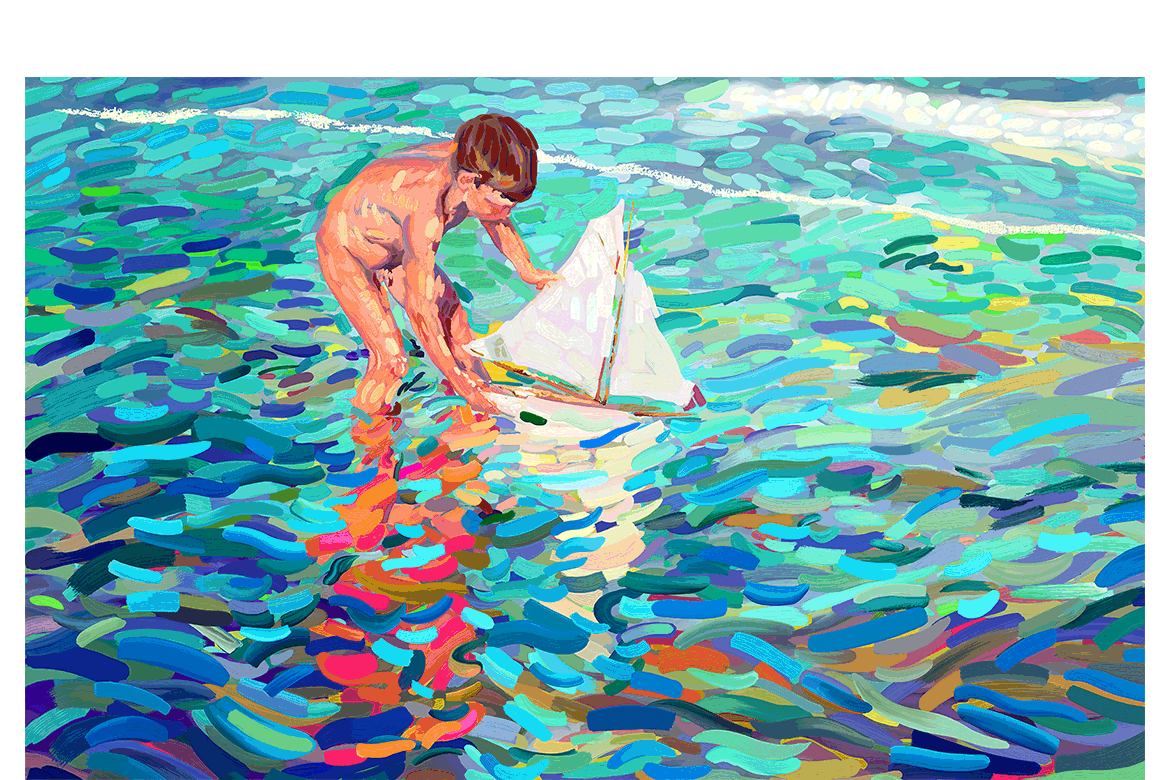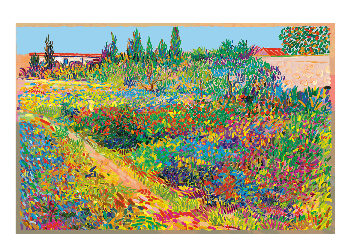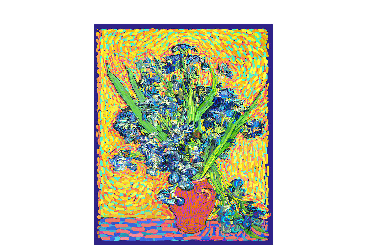 This effect gives the painting a dynamic feel and allure with its interactive character. Anywhere from 12 to 64 images can compose an animated lenticular piece. This sequence is at once interlaced and captured by the observer through a vertical lens.